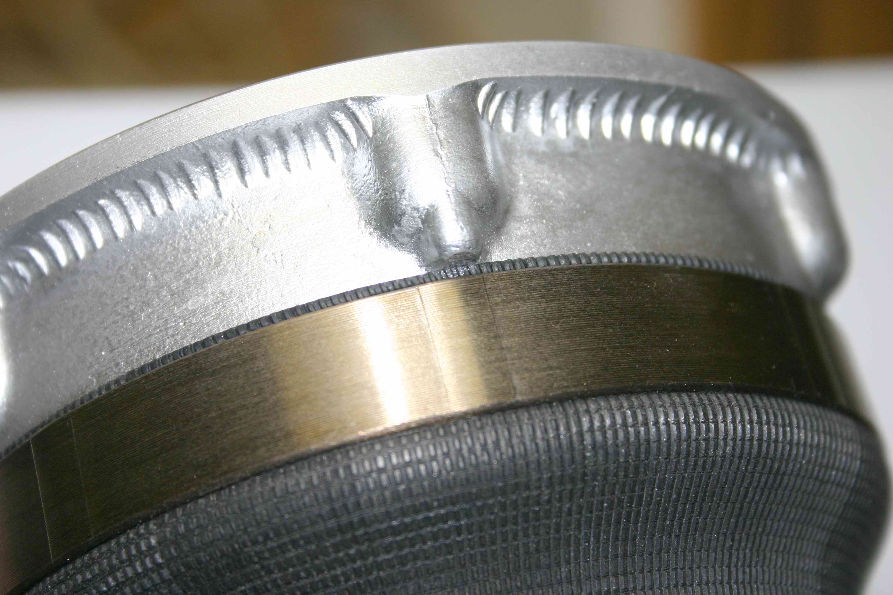 На оригинальных заводских баллонах применяются кольца аналогичные нашим. Но иногда на восстановленных баллонах сторонними фирмами можно наблюдать кольца имеющие сварной шов. Некоторые производители его маскируют методом фрезерования, а некоторые вообще не стесняются своей халтурной работы. На фотографиях ниже можно наблюдать эти некачественные кольца.